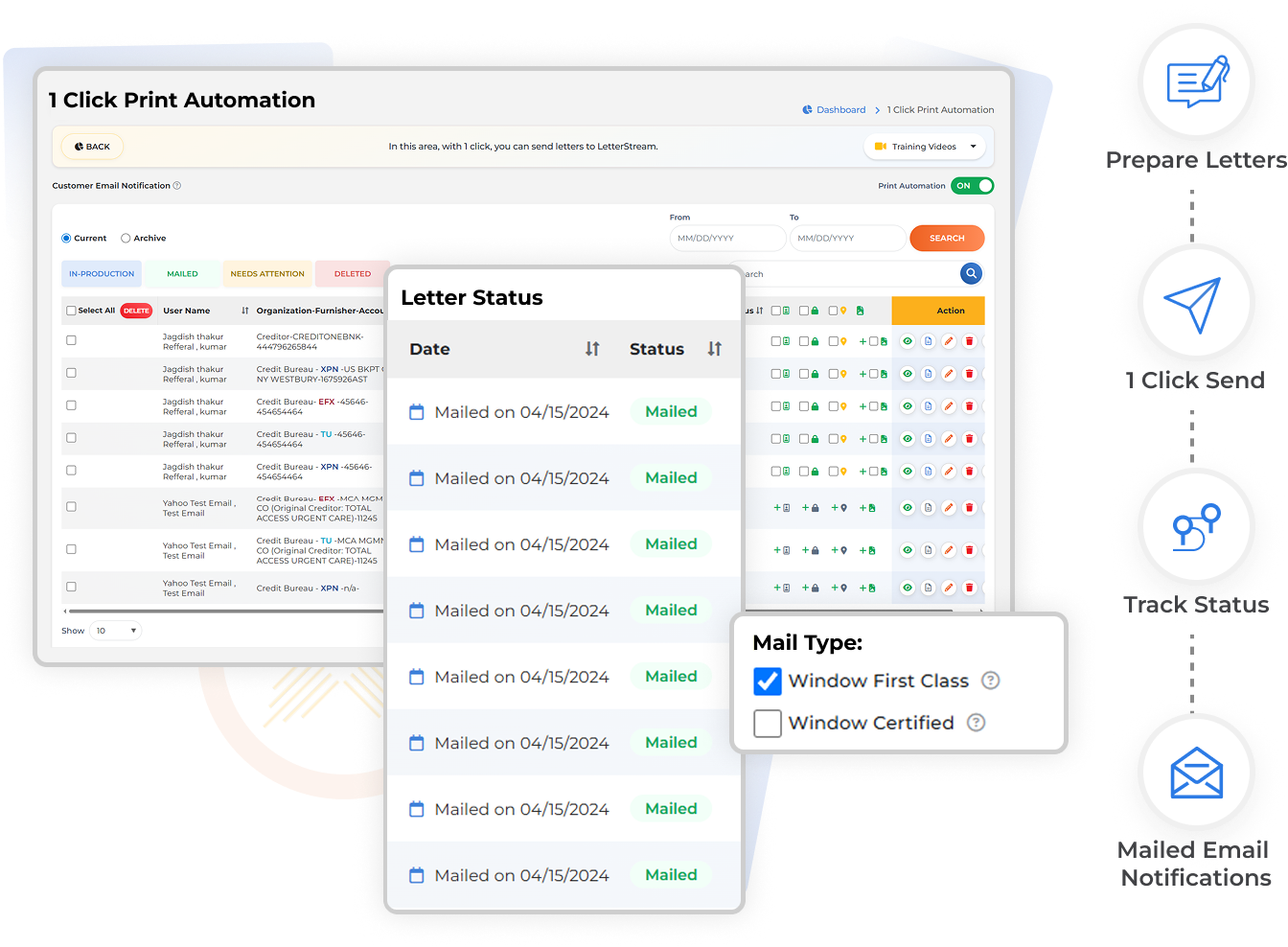 Print and send your dispute letters to LetterStream with one click.