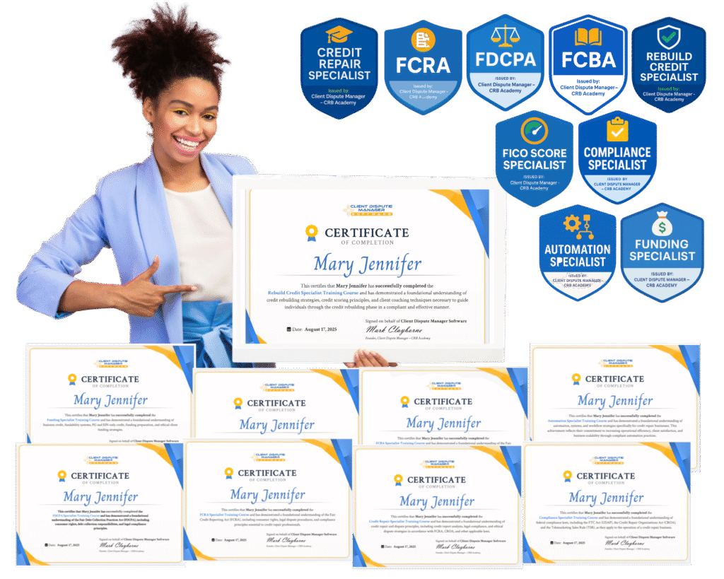 If you’re ready to take the next step, make sure you’re equipped with the right training and the right tools. The Client Dispute Manager Software Certification Program and 15-Step Roadmap is a great place to start.