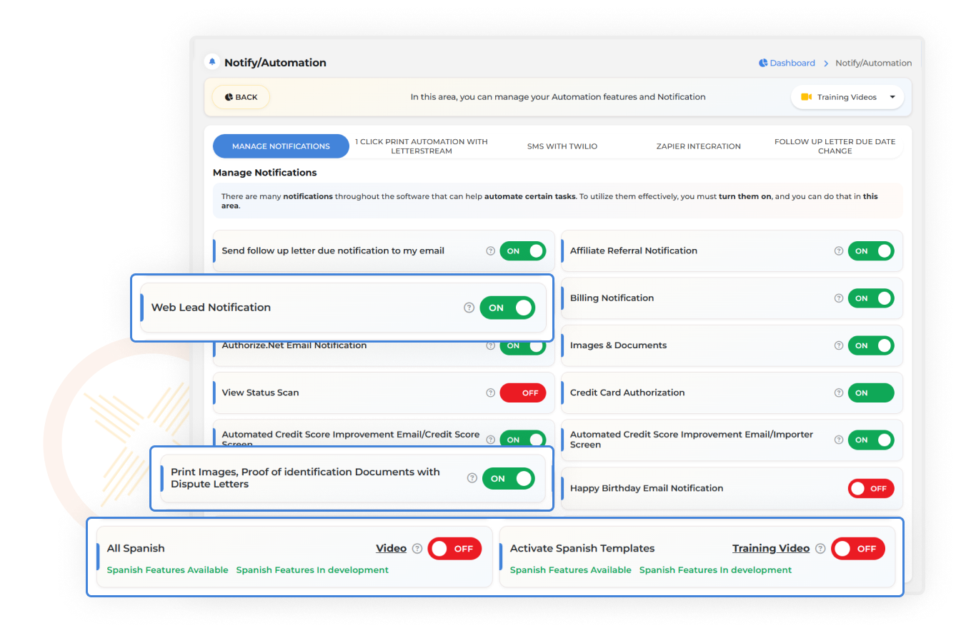 - Central location for Spanish features: Enhance inclusivity for Spanish-speaking clients.