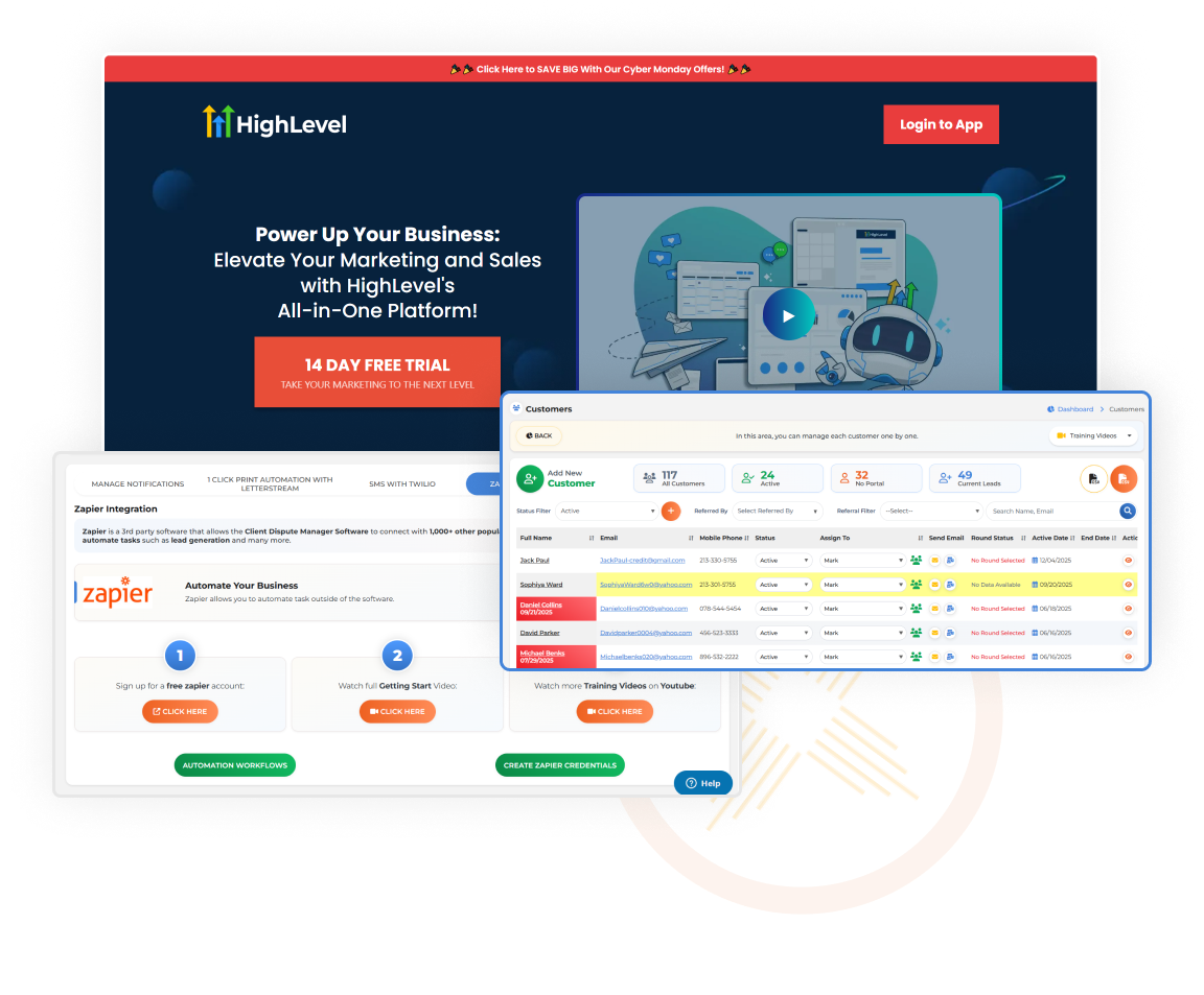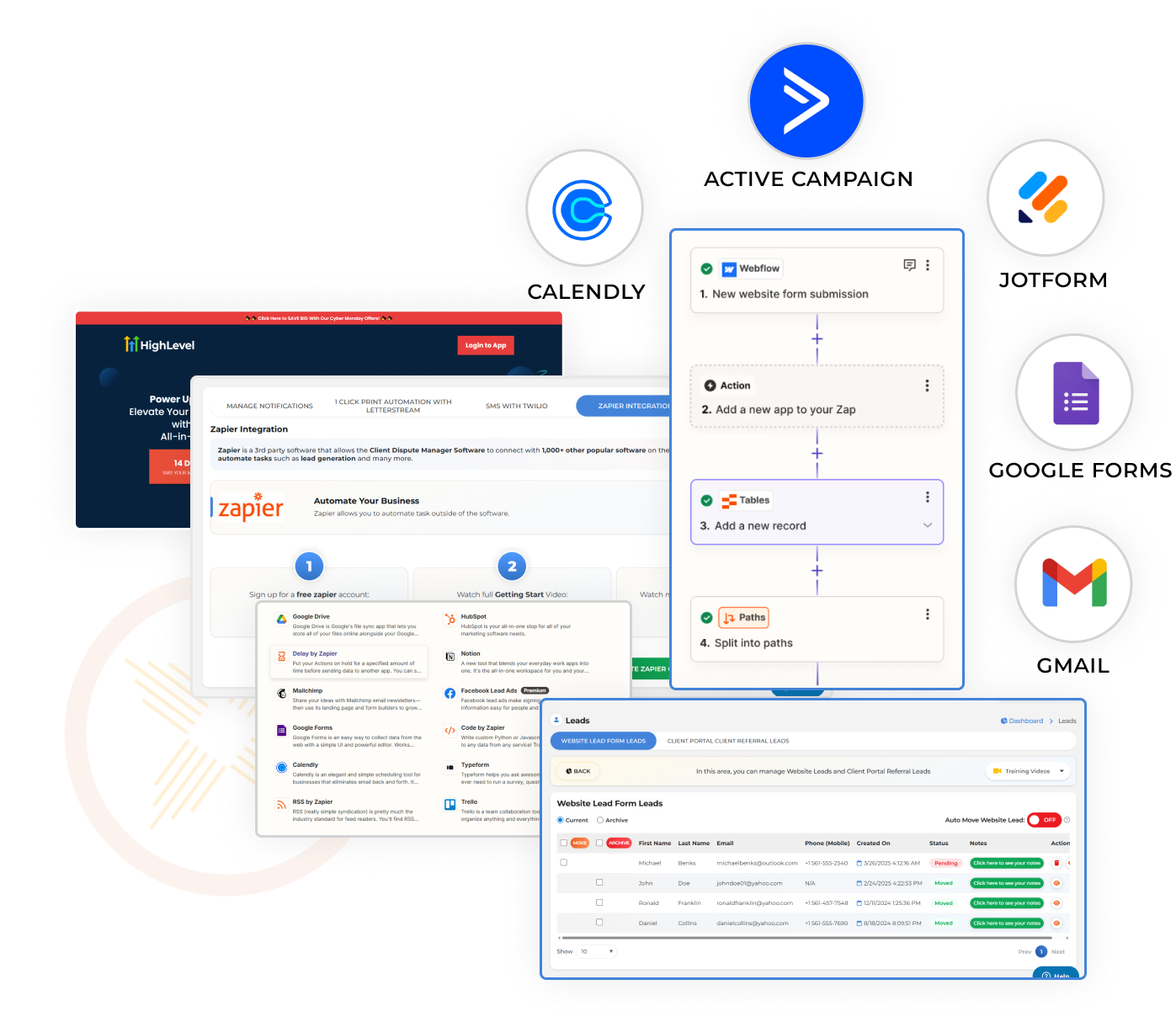 Use your GoHigh Level account alongside Client Dispute Manager for unmatched automation and lead tracking. Integrate easily with Zapier to leverage the strengths of both systems for ultimate efficiency.