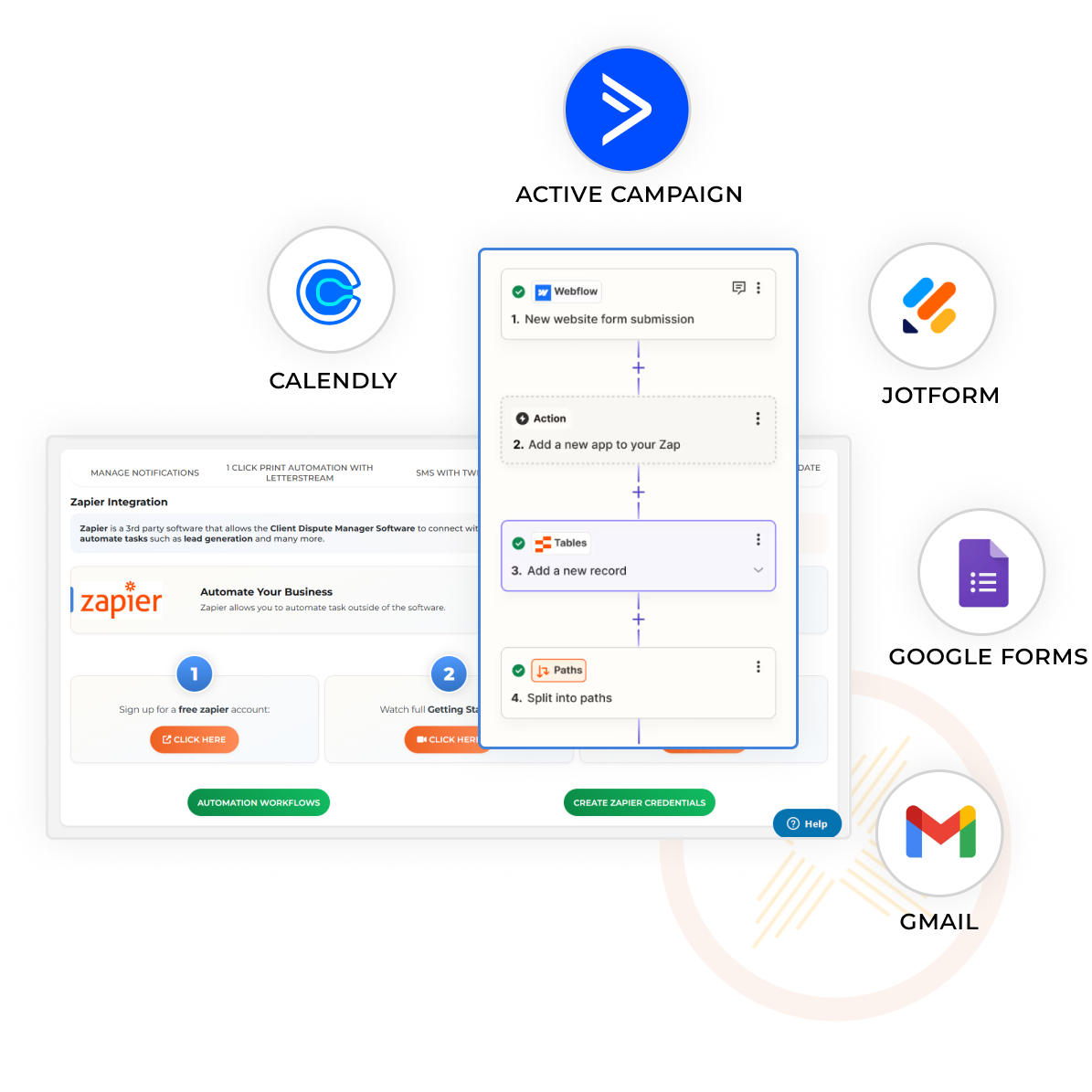Automate daily workflows and integrate over 5,000 apps to save time, improve efficiency, and grow your credit repair business.