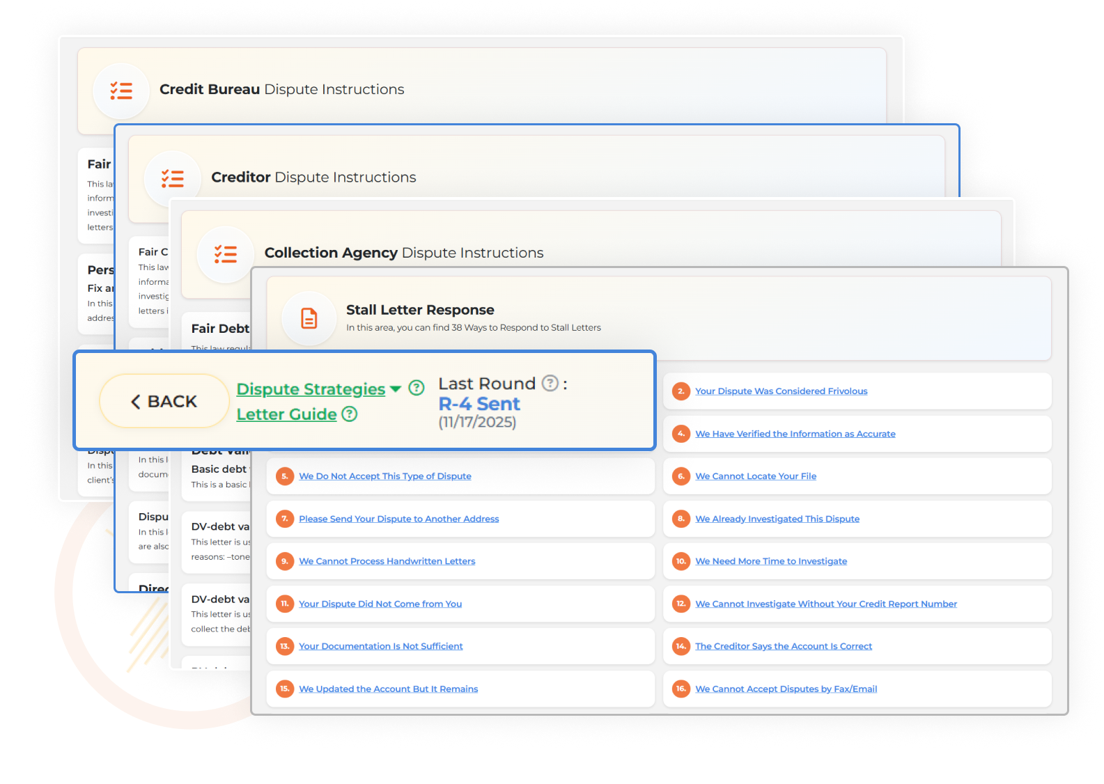 Access 10 powerful dispute flows designed for verified accounts, stall letters, and general dispute strategies. These flows are versatile, working with manual, AI, or Metro 2 methods, and are included in every plan.