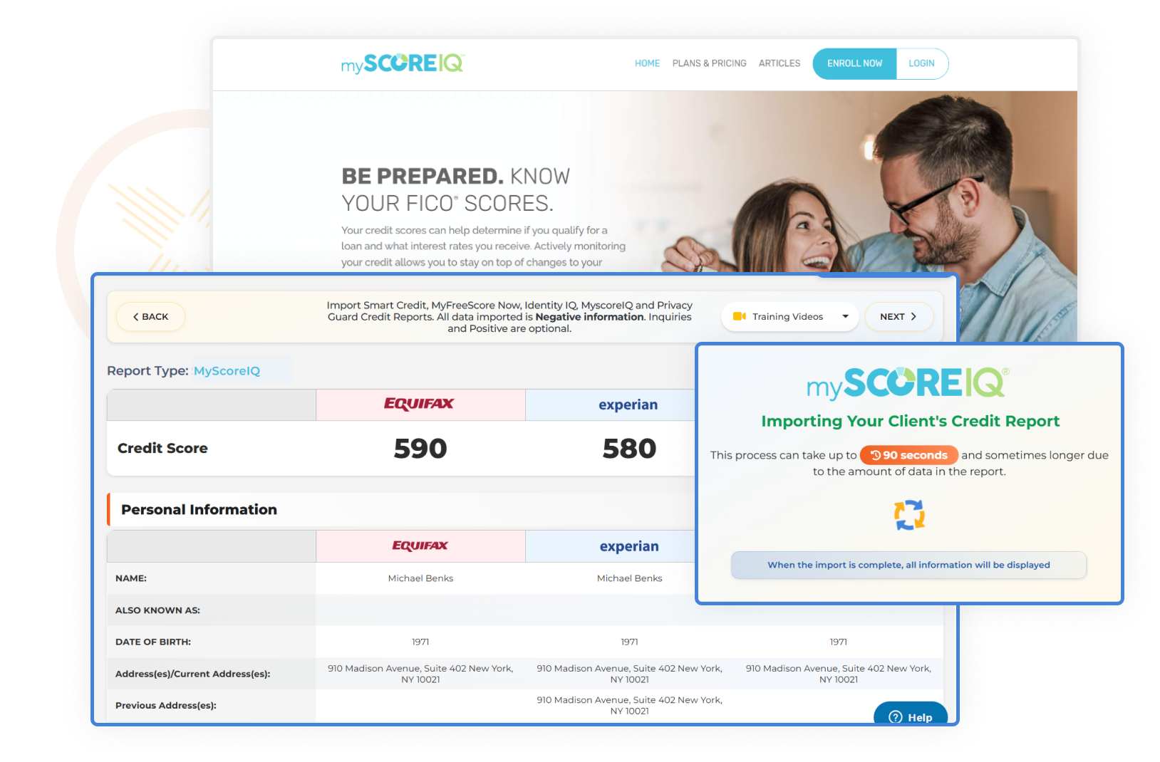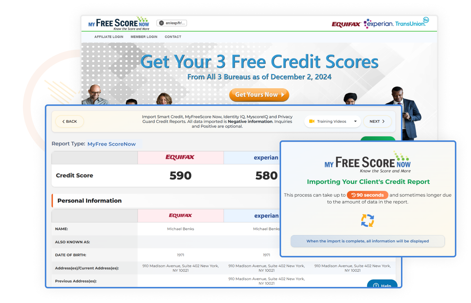 Effortlessly connect to My Free Score Now and import credit reports with a single click, enhancing your efficiency.