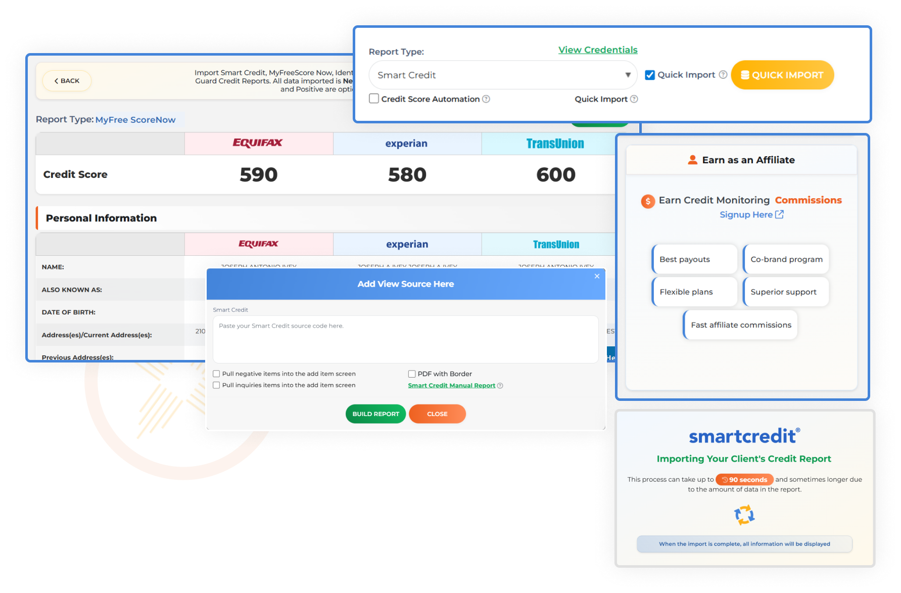 Seamlessly integrate with Smart Credit to import client credit reports in minutes, saving time and eliminating manual logins.